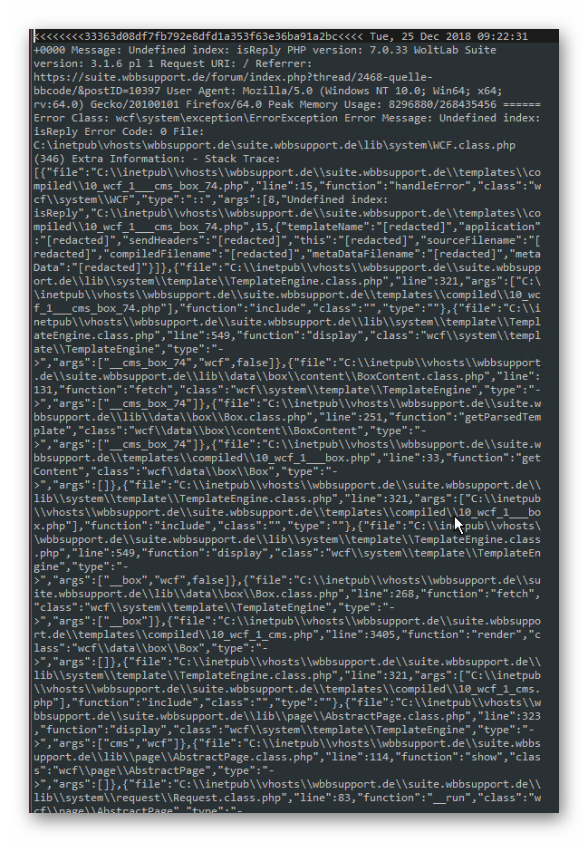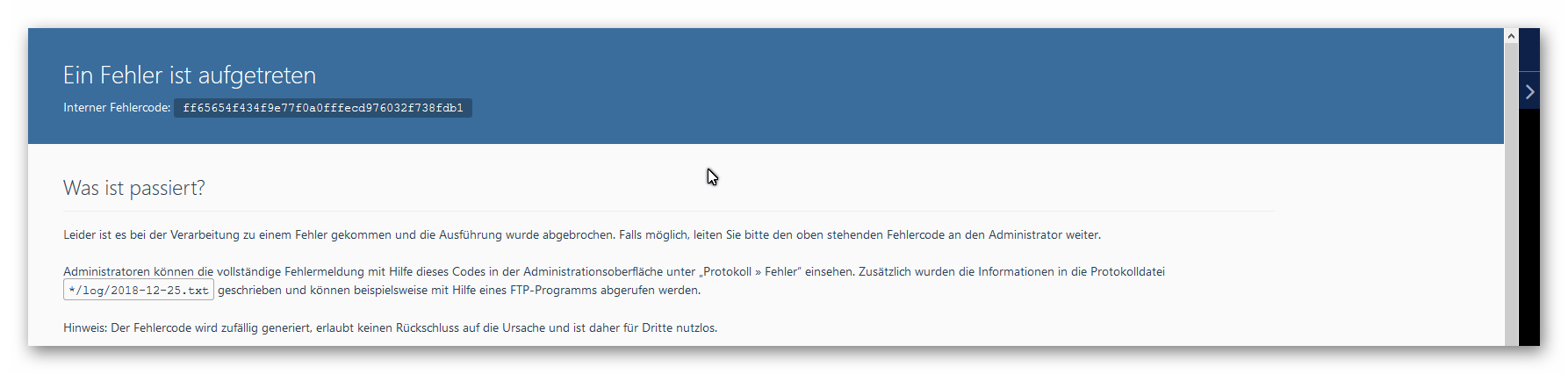 Wenn ihr es so postet, kann jeder was mit der Fehlermeldung anfangen und auch wird sie so über die Suche des Forums gefunden und andere User können so, schneller Hilfe zu Fehlern bekommen.