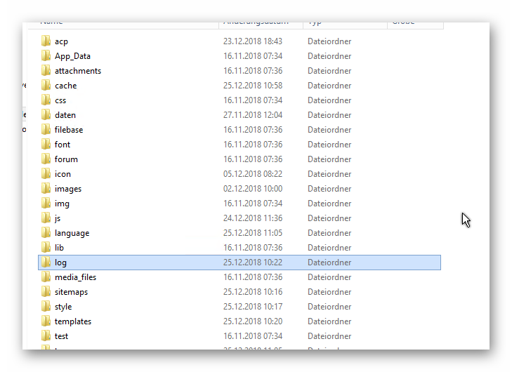 Ordner des Forums aufrufen, dann den Ordner log öffnen