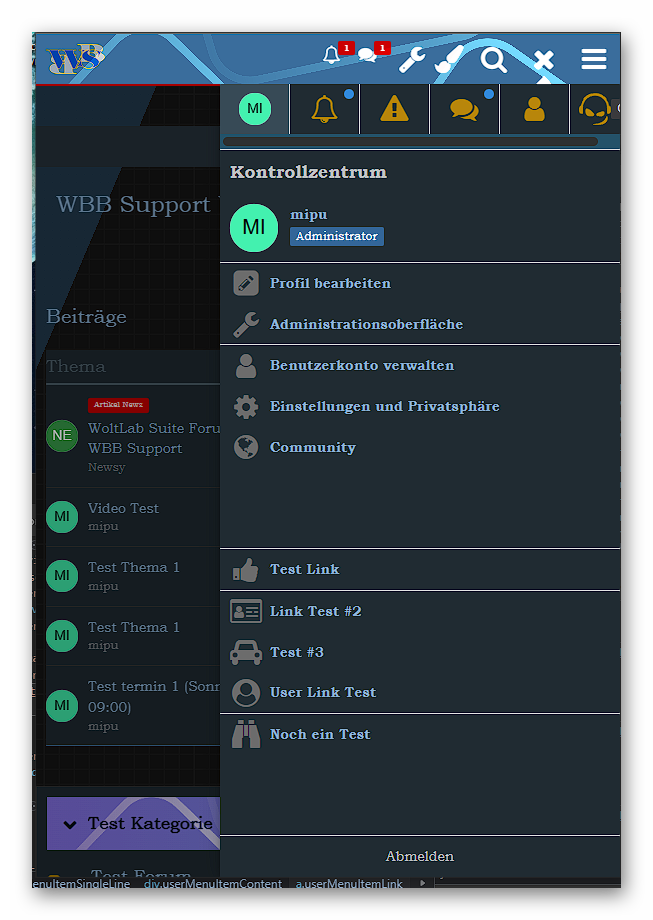 User Panel Mod Benutzermenü Erweiterung