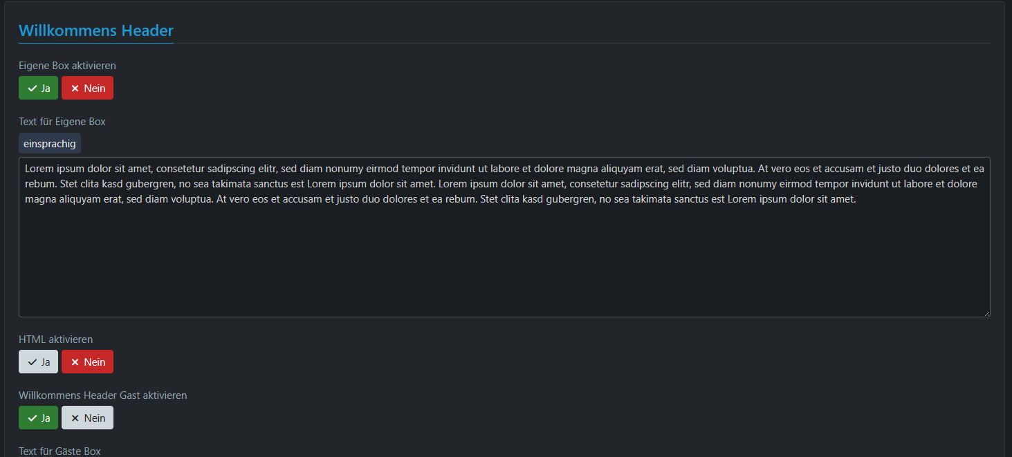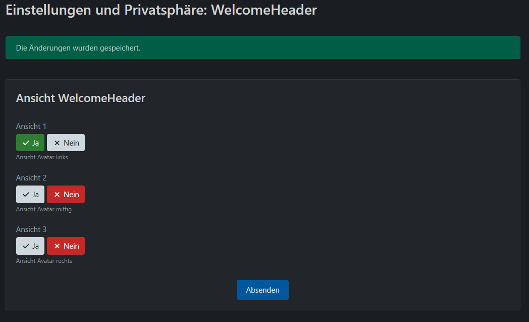- Welcome Header Profilfeld