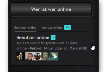 Mit unserer Erweiterung „Wer Ist/War Online?“ für die Woltlab Suite, kannst Du spielend einfach eine Box von allen Benutzern, die gerade online sind oder die online waren auf Deiner Webseite anzeigen lassen.