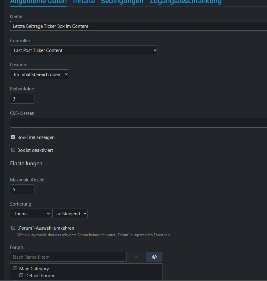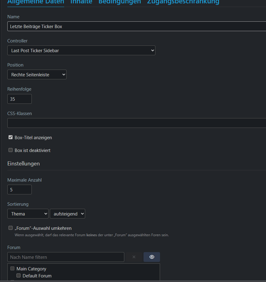 Steuerbar ist das ganze im ACP > Konfiguration > Last Post Ticker