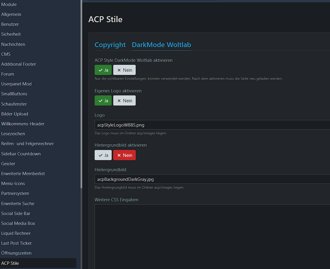 Bringt euch den dunklen ACP Stil dauerhaft in euer ACP egal welches Farbschema ihr gewählt habt.