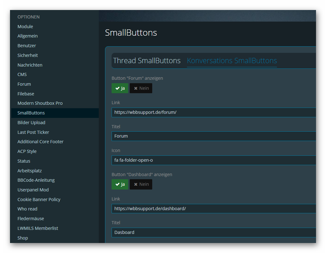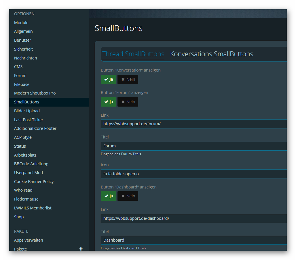 Die Buttonauswahl (ja/nein) lässt sich nach Bedarf über das ACP steuern.