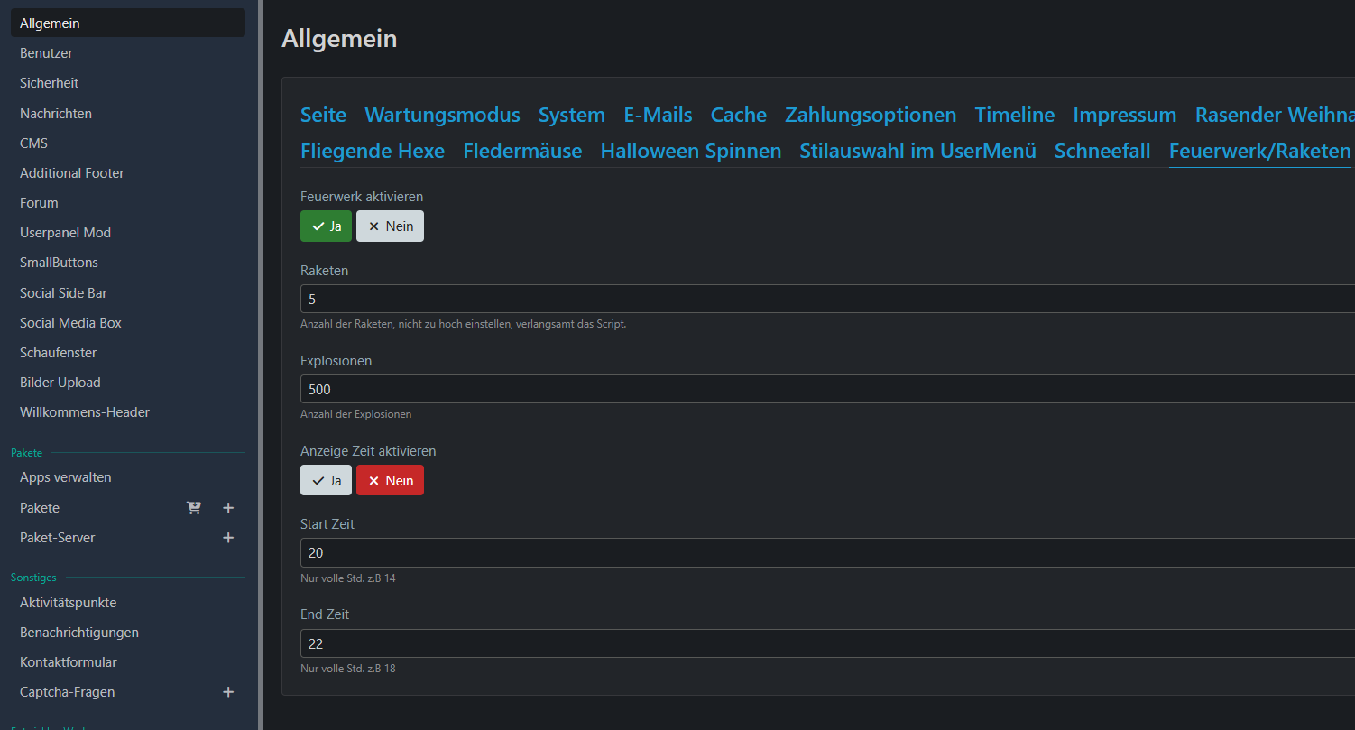 Mit diesem Plugin, habt ihr die Möglichkeit ein Feuerwerk anzeigen zu lassen.
