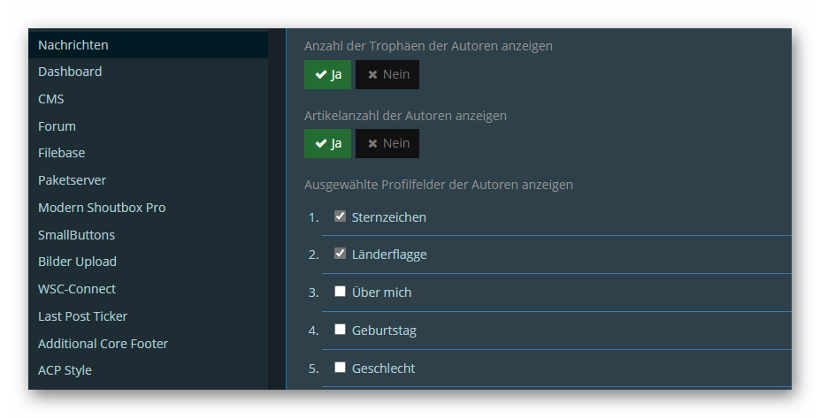 Die Auswahl der Flaggen befindet sich jetzt in den Profilen,