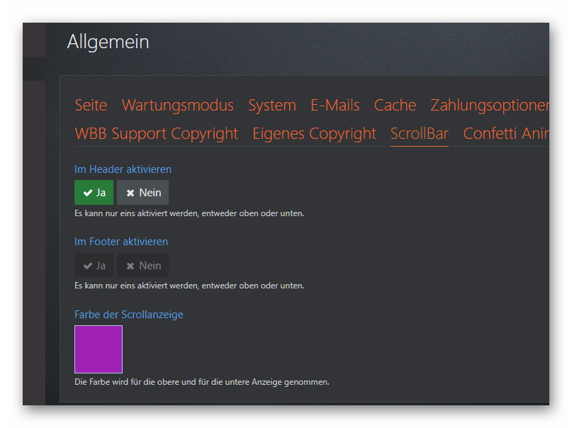 Über das ACP könnt ihr Einstellen wo es angezeigt werden soll, auch könnt ihr die Farbe ändern.