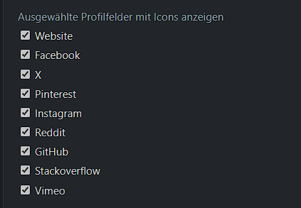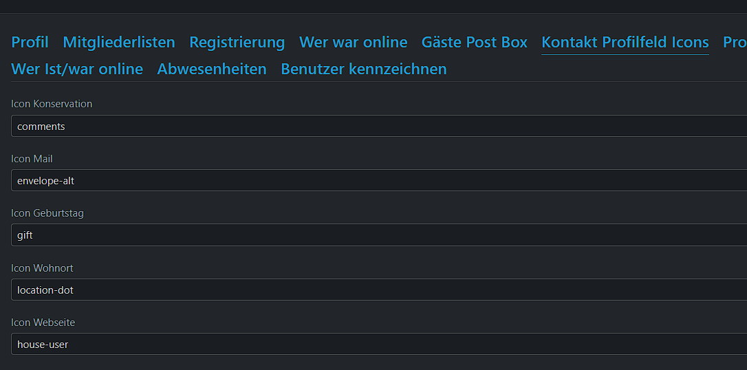 Die Anzeige müsst ihr erst mal im ACP unter Konfiguration - Nachrichten - Seitenleiste - Ausgewählte Profilfelder mit Icons anzeigen aktivieren.