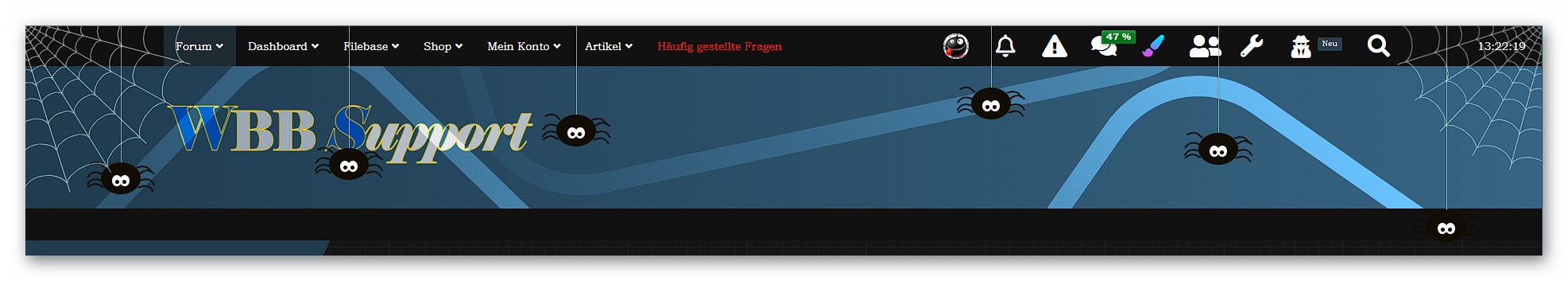 Zeigt euch nach dem aktivieren, Spinnen im Header der Seite an.
