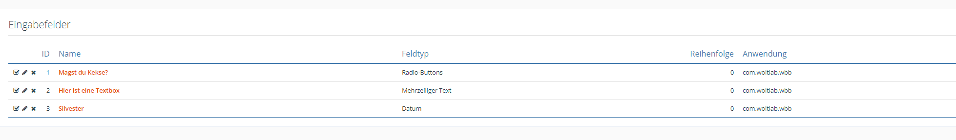 Manchmal kommt es vor, dass man mehrere Eingabefelder mit gleichem Namen, aber unterschiedlichen Funktionen erstellen muss. Um diese Felder auseinander halten zu können, kann bei der Erstellung des Eingabefeldes ein Interner und Öffentlicher Bezeichner festgelegt werden. Dazu können sie Im Titel 2 Wörter setzen, welche durch ein Semikolon getrennt werden müssen.