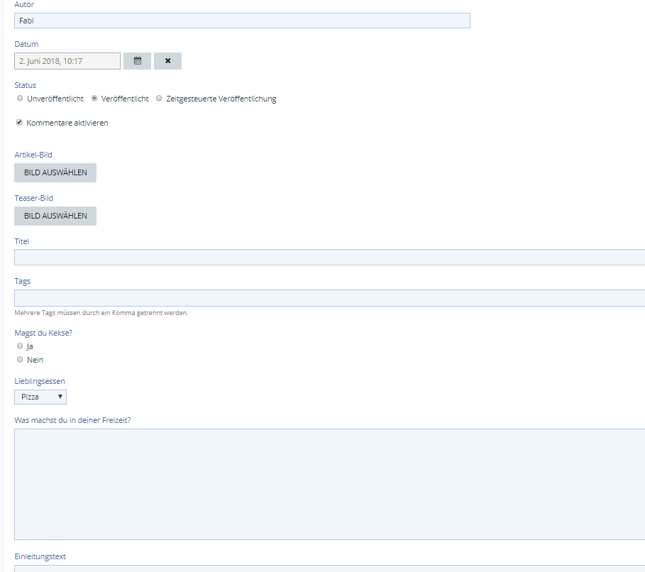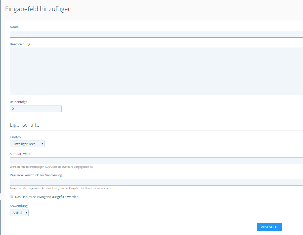 Mit diesem Plugin ist es möglich, verschiedene Eingabefelder einem Artikel hinzuzufügen.